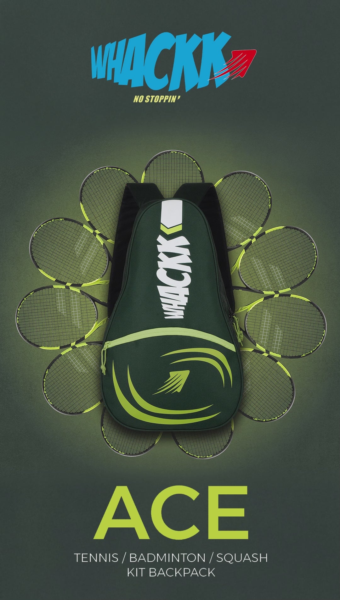 Ace Printed 28L Unisex Lightweight Stylish Tennis Badminton Squash Equipment Kit Bag | Shuttle Bag |Shoe Pocket| Backpack Style | Spacious Storage Compartment| Rackets Tennis-6 Badminton-8