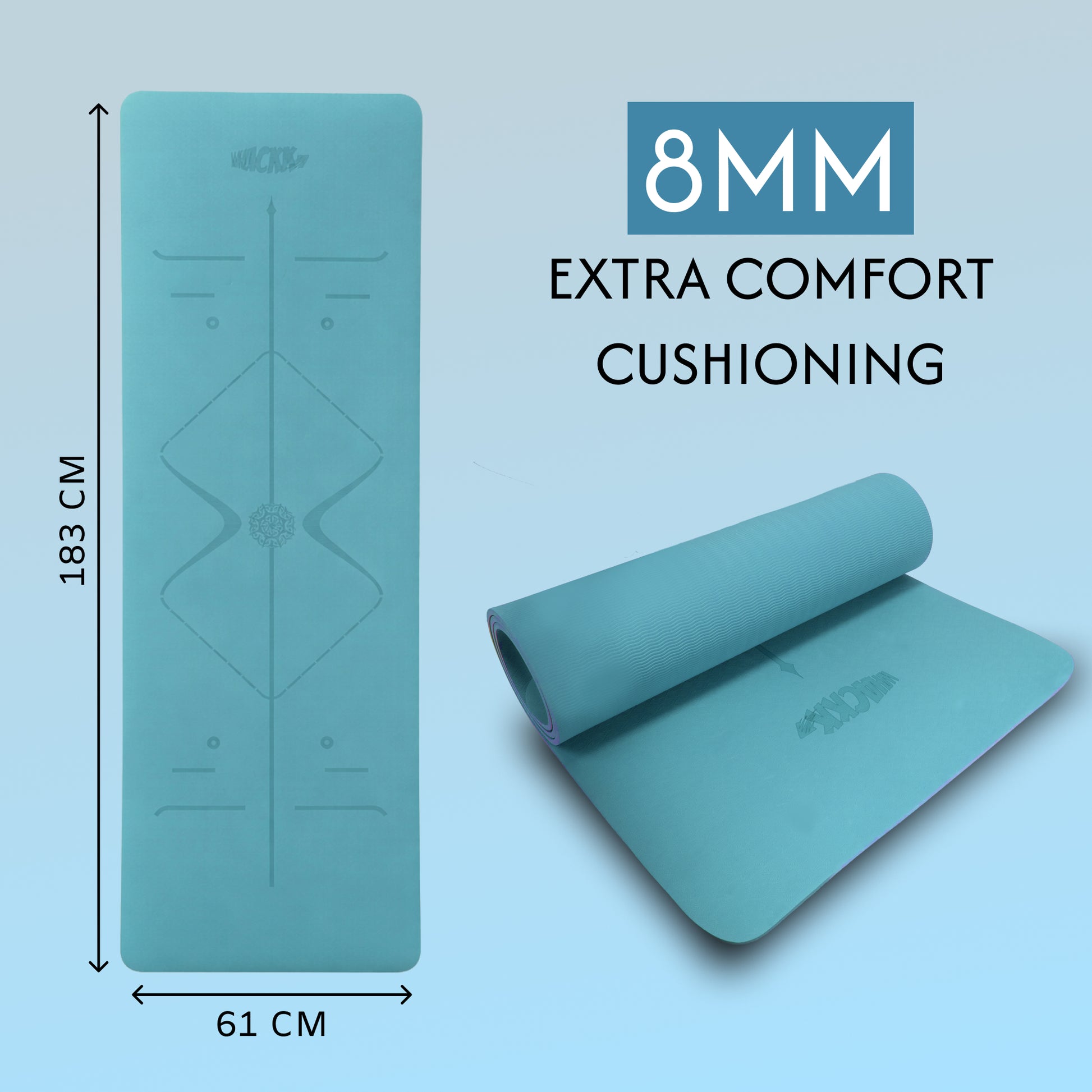 - EXTRA THICK CUSHIONING: With an 8 mm thickness, the mat delivers superior cushioning and enhanced joint support for knees, elbows, and back, ensuring maximum comfort during yoga, pilates, stretching, and workout routines.