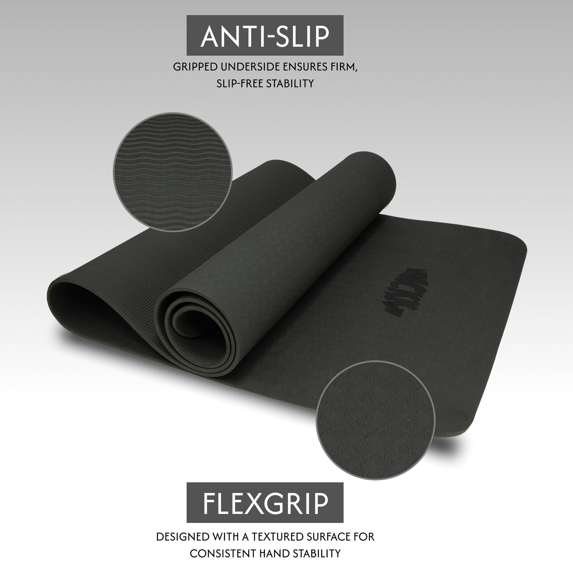 - NON-SLIP TEXTURED SURFACE: The dual-sided textured surface enhances grip for both hands and feet, preventing slipping on different floor types and ensuring stability throughout your practice.
