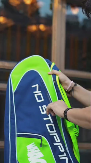 With 2 spacious compartments for your rackets and clothing, a dedicated shoe section to keep things clean, 2 smart utility pockets for required essentials, and one secret pocket inside the clothing compartment. It is built to organize, protect and elevate your game.