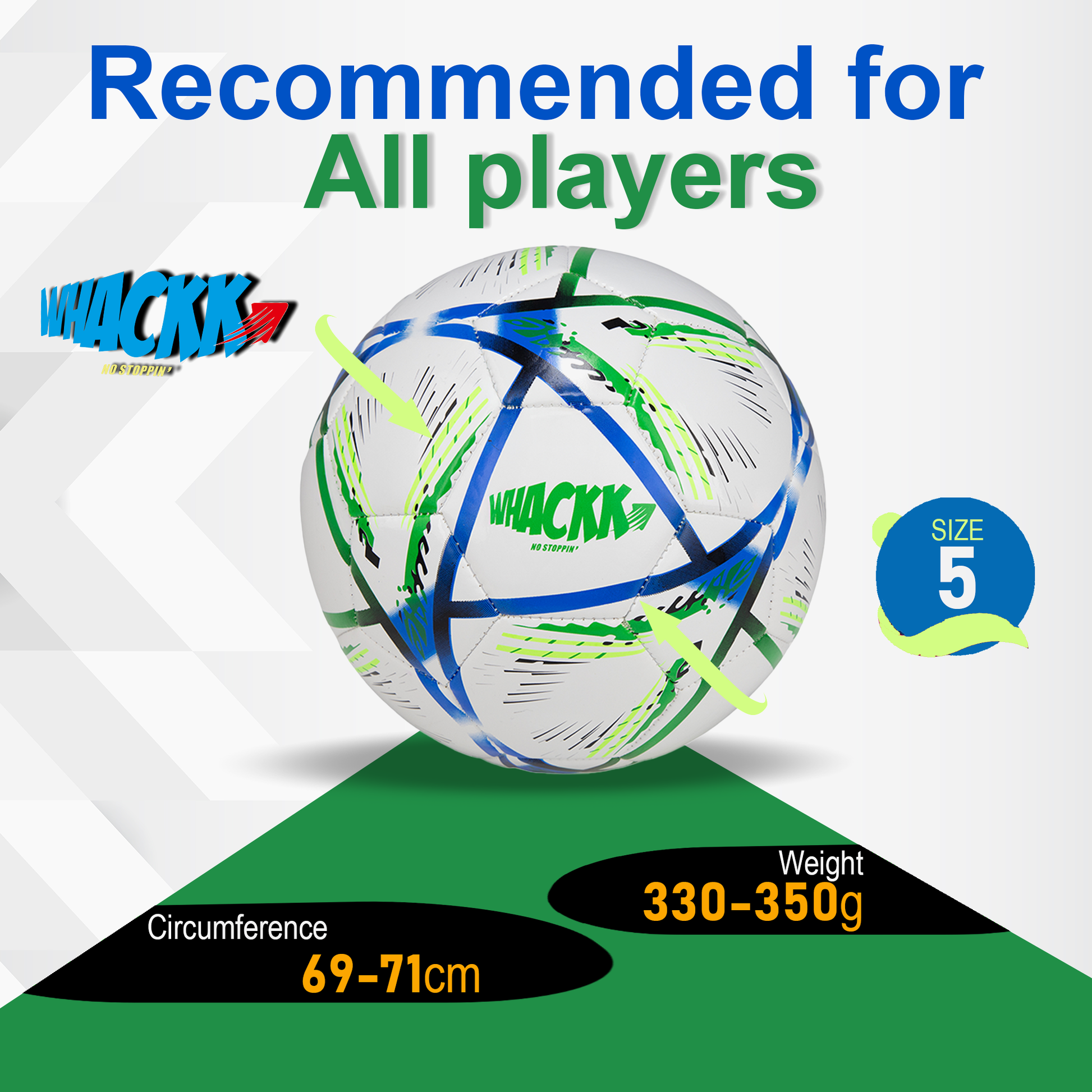 Play your best game with the Get ready to dominate the pitch with the Whackk Size 5 Football, meticulously crafted for durability, performance, and endless fun. Whether you're training, playing casual matches, or enjoying backyard games, this ball is designed to deliver consistent performance across various surfaces. Made with high-quality PVC and a hand stitched construction, it's a reliable choice for all ages and skill levels, offering excellent value without compromising on quality. It’s weather-resistant properties ensure the game never stops, come rain or shine. Get yours today and elevate your football experience!