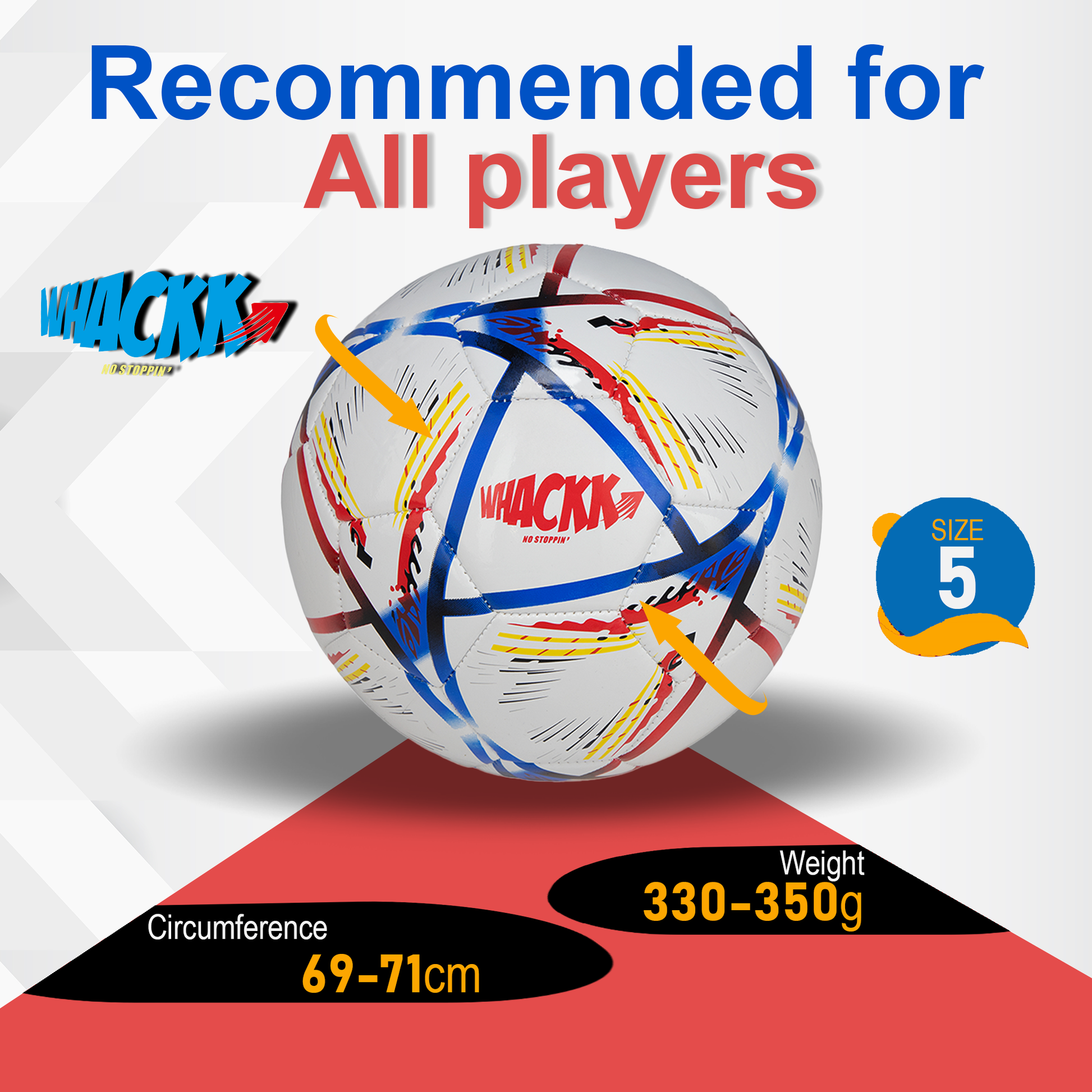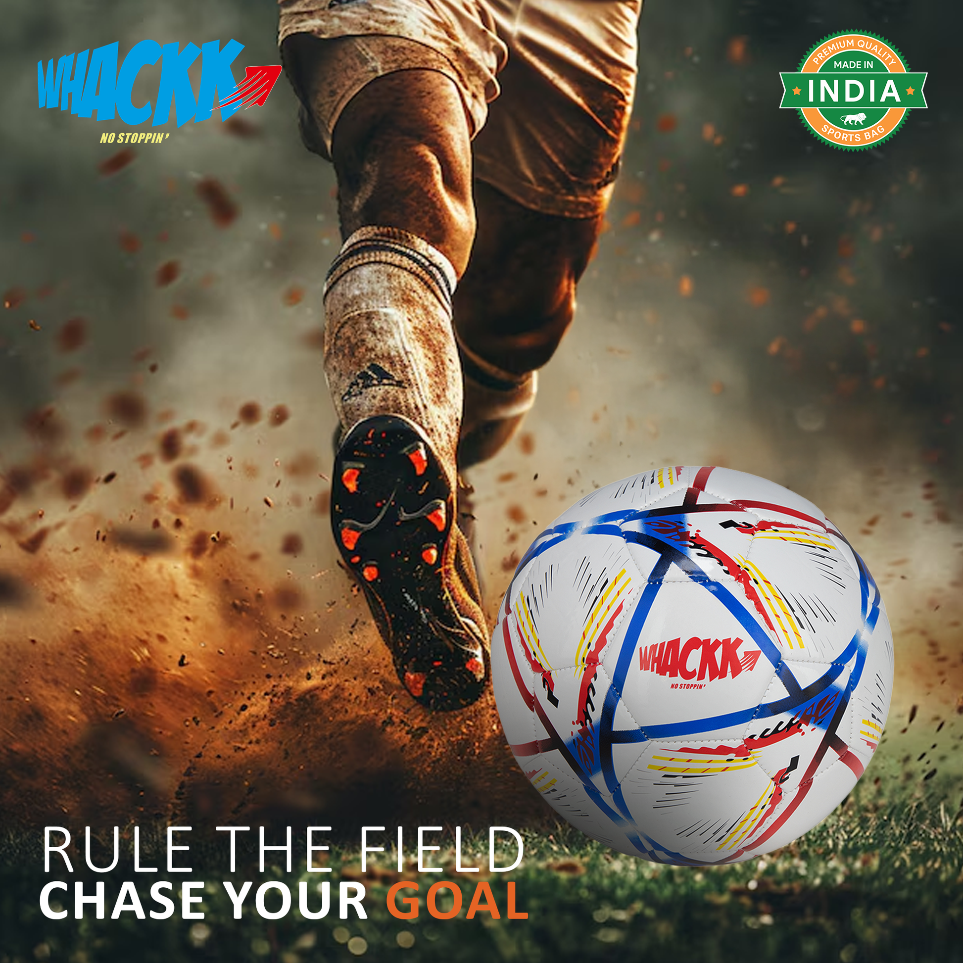 Get ready to dominate the pitch with the Whackk Size 5 Football, meticulously crafted for durability, performance, and endless fun. Whether you're training, playing casual matches, or enjoying backyard games, this ball is designed to deliver consistent performance across various surfaces. Made with high-quality PVC and a hand stitched construction, it's a reliable choice for all ages and skill levels, offering excellent value without compromising on quality. It’s weather-resistant properties ensure the game never stops, come rain or shine. Get yours today and elevate your football experience!