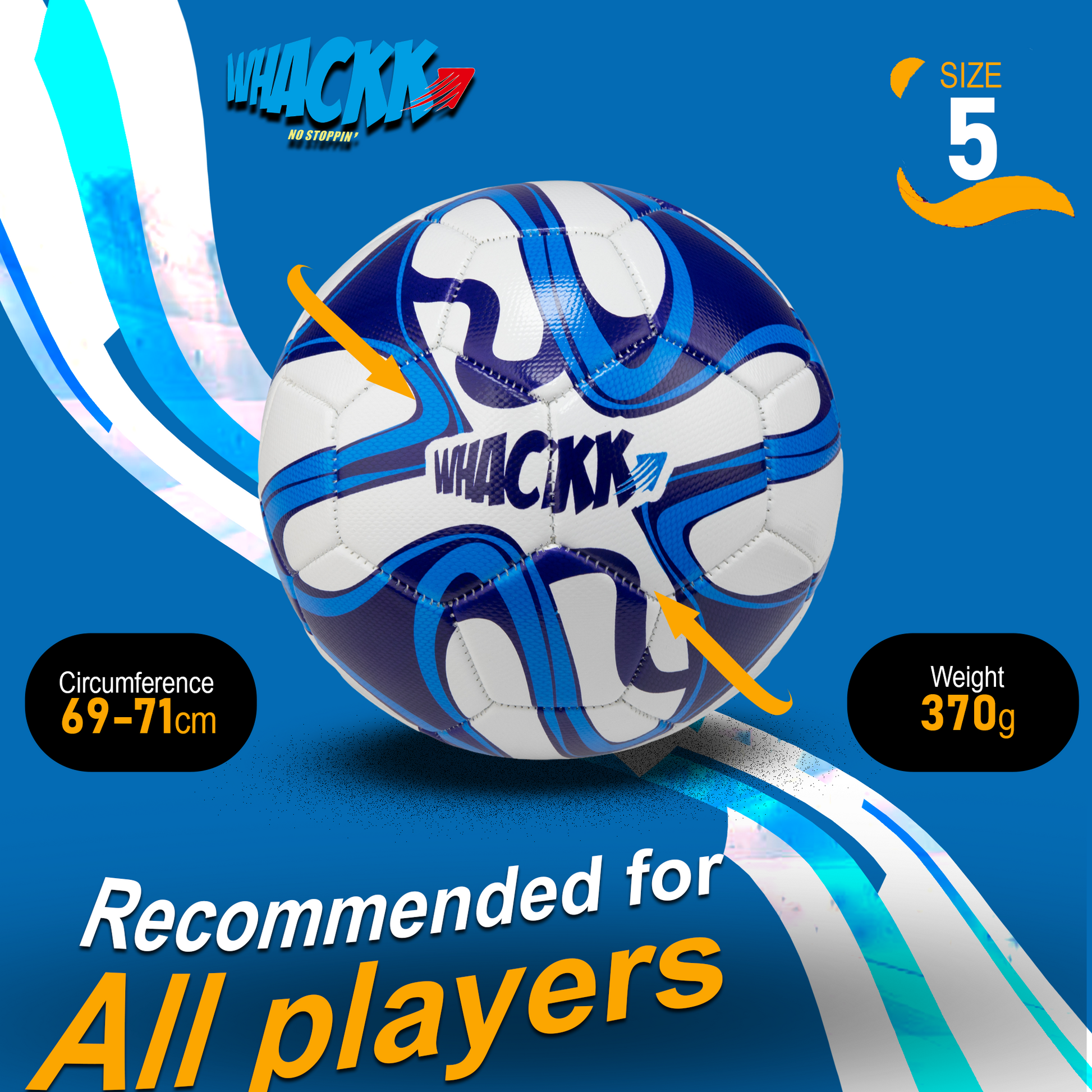Play your best game with the Whackk Pele Blue & White Football (Size 5). Designed for both practice and matches, this football combines professional performance, classic style, and high durability for players of all levels.